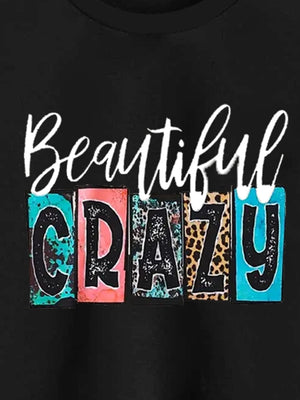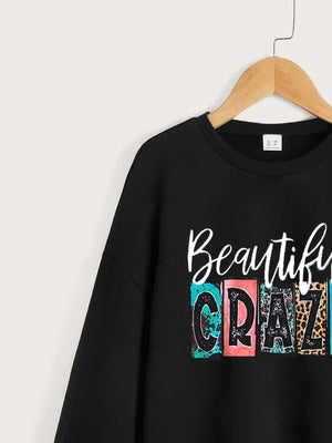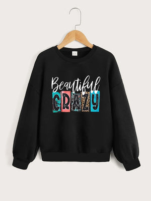 Black Round Neck Graphics Printed Long Sleeves Polyester Sweatshirt