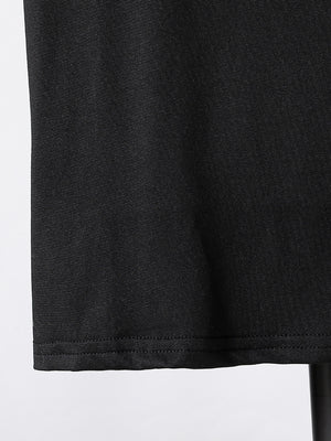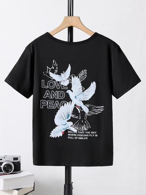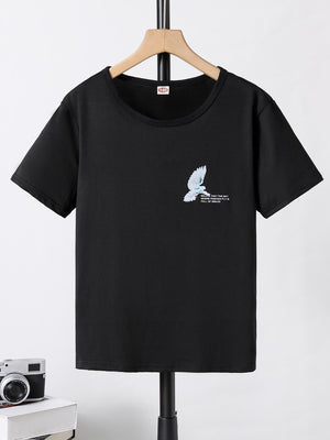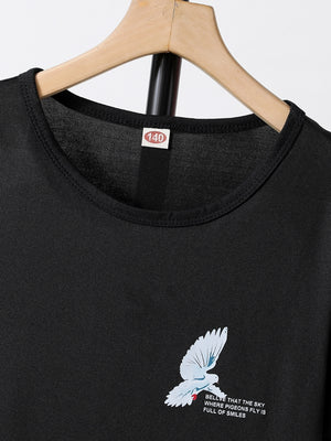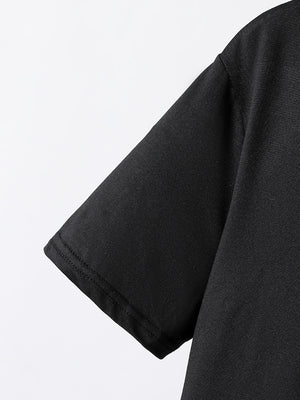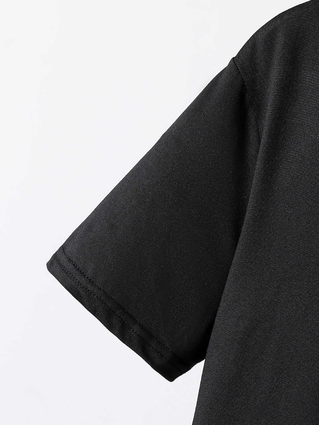 Black Round Neck Graphics Printed Short Sleeves Polyester T-Shirt
