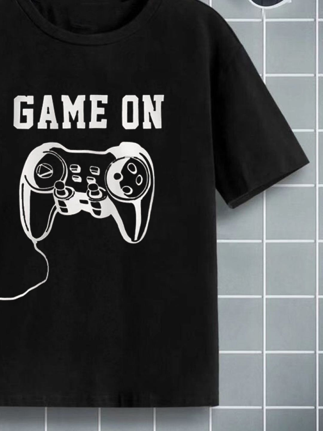 Black Round Neck Graphics Printed Short Sleeves Polyester T-Shirt
