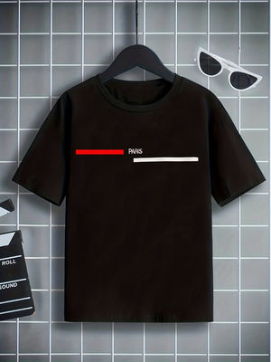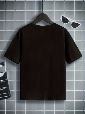 Look effortlessly stylish in this black round neck T-shirt featuring dynamic graphic prints. The durable polyester material offers a comfortable and relaxed fit.