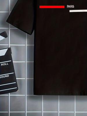 Black Round Neck Graphics Printed Short Sleeves Polyester T-Shirt