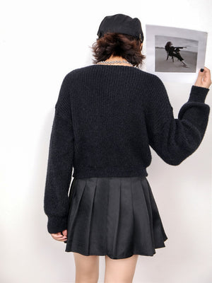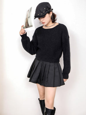 Black Round Neck Long Sleeves Solid Regular Sleeves Nylon Top
