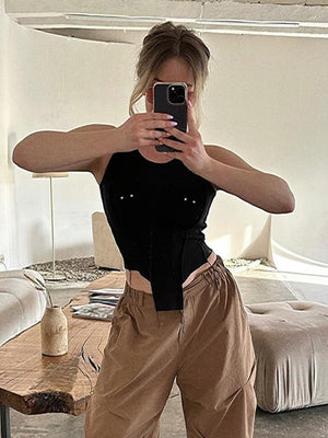 Introducing our Black Round Neck Sleeveless Polyester Top, a stylish and versatile addition to your wardrobe. Made from high-quality polyester fabric, this top offers a comfortable and breathable fit. The round neck design adds a touch of elegance, while the black color provides a timeless and sophisticated look.
