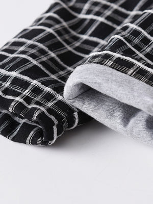 Black Shirt Collar Short Sleeves Solid Top & Shorts Pure Cotton Set