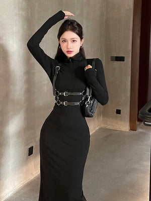 Embrace timeless style and make a statement with our black shirt collar solid long sleeves maxi bodycon polyester dress. Pair it with heels and accessories for a sophisticated look or dress it down with flats for a more relaxed vibe.