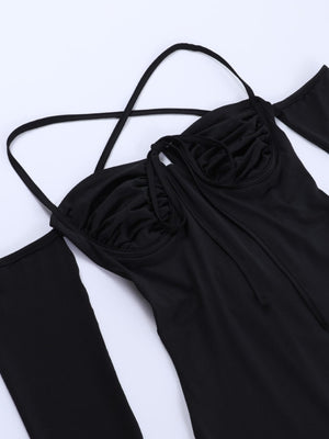 Black Shoulder Strap Long Sleeves Solid Polyester Bodycon Dress