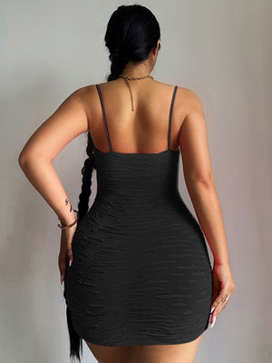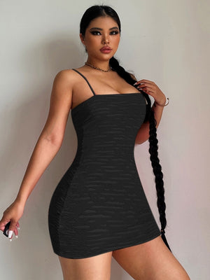 Black Shoulder Strap Sleeveless Solid Polyester Bodycon Dress
