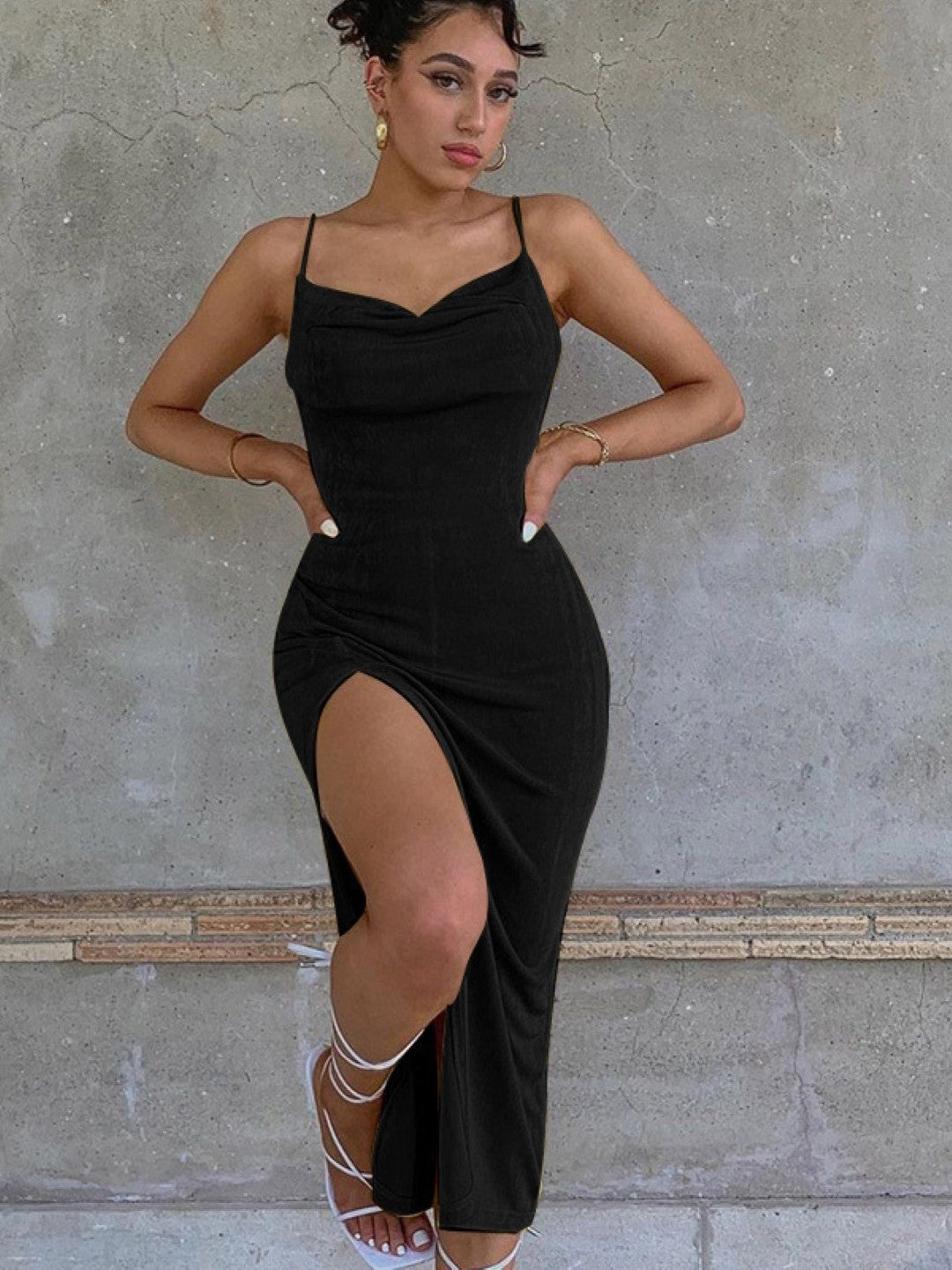 This Black Shoulder Straps Bodycon Sleeveless Solid Maxi Polyester Dress is ideal for any special event. The elegant design and bodycon fit highlight your curves, with the details adding a touch of allure. Crafted from high-quality polyester fabric, this dress is both comfortable and chic.