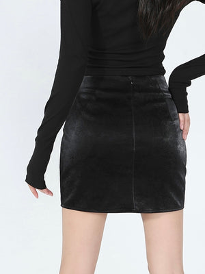 Introducing our Black Solid A-Line Above Knee Slip-On Polyester Skirt, a versatile addition to your wardrobe that effortlessly combines style and comfort.