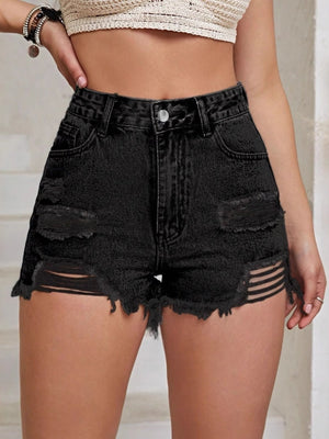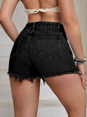 Black Solid Skinny Fit Above Knee Cotton Shorts