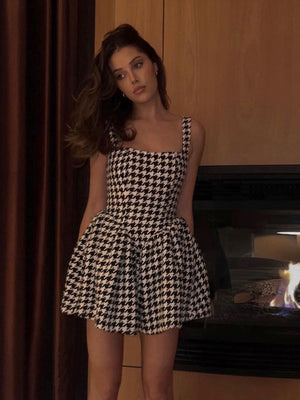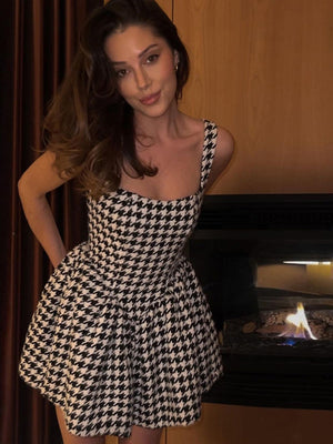 Embrace your feminine side and turn heads with our black square neck a-line abstract sleeveless above knee polyester dress. Crafted from high-quality polyester, this dress offers a comfortable and lightweight feel, perfect for any occasion.