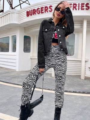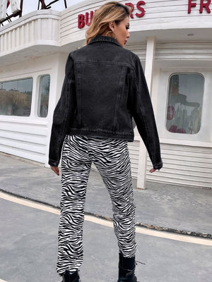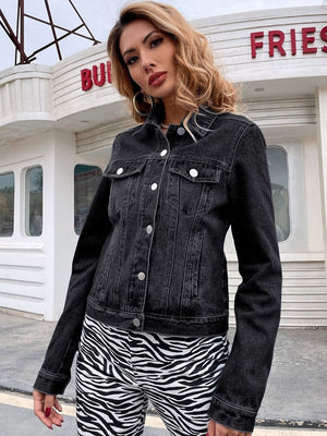 Black Stand Collar Solid Long Sleeves Cotton Jacket