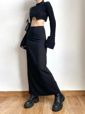 Introducing our Black Straight Maxi Casual Polyester Solid Skirt, a versatile addition to your wardrobe that effortlessly combines style and comfort.