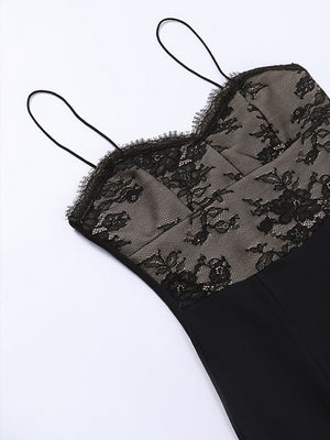 Black Strap Lace Patchwork Polyester Dress