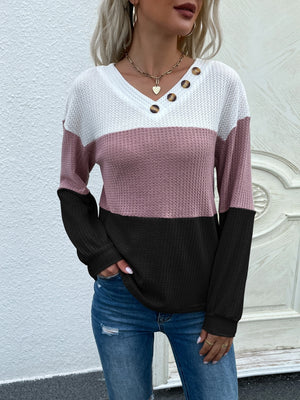 Black V-Neck Colourblocked Long Sleeves Cotton Sweater