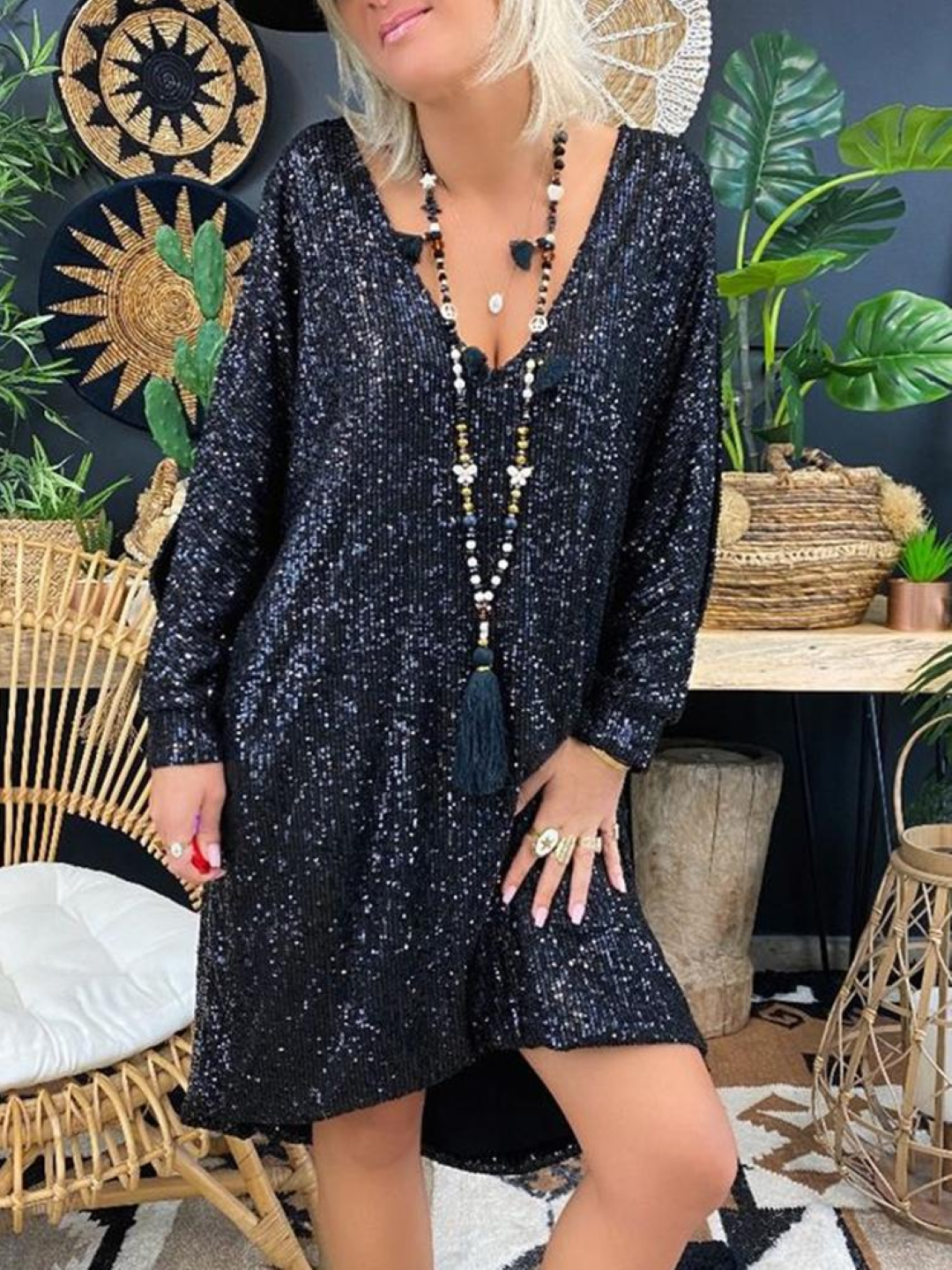 This elegant a-line dress features a flattering v-neckline and long sleeves, perfect for any occasion. Made from high-quality polyester material, the dress is comfortable to wear and easy to care for.