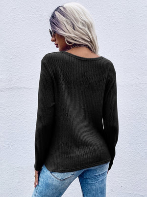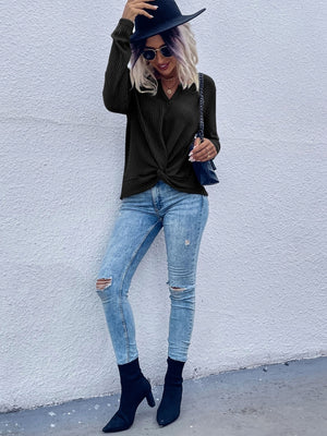 Introducing our Black V-Neck Solid Long Sleeves Cotton Top, a stylish and versatile addition to your wardrobe. Made from high-quality cotton fabric, this top offers a comfortable and breathable fit. The v-neck design adds a touch of elegance, while the black color provides a timeless and sophisticated look.