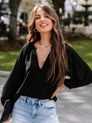 Add some western flair with our black v-neck solid long sleeves polyester top. It give this top a cool, casual vibe. Pair it with shorts for a laid-back summer outfit.