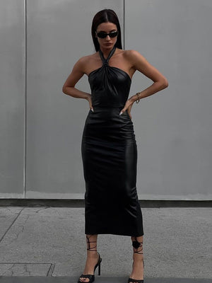 Embrace timeless style and make a statement with our black v-neck solid sleeveless maxi bodycon polyester dress. Pair it with heels and accessories for a sophisticated look or dress it down with flats for a more relaxed vibe.