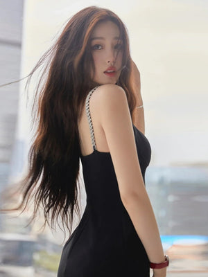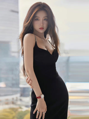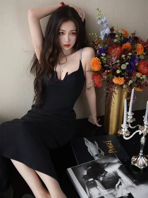 Embrace timeless style and make a statement with our black v-neck solid sleeveless maxi bodycon polyester dress. Pair it with heels and accessories for a sophisticated look or dress it down with flats for a more relaxed vibe.