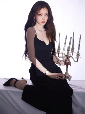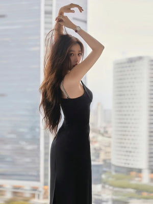 Black V-Neck Solid Sleeveless Maxi Bodycon Polyester Dress
