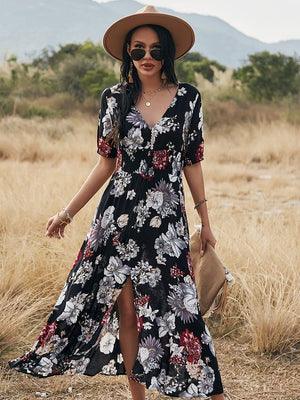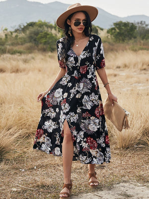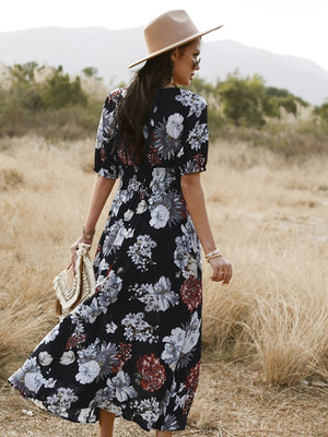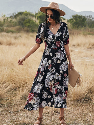 Black V-Neck Viscose A-Line Dress