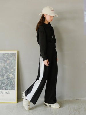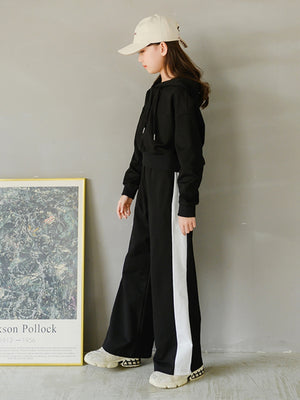 Black & White Hood Long Sleeves Cotton Blend Palazzos & Top Solid Clothing Set