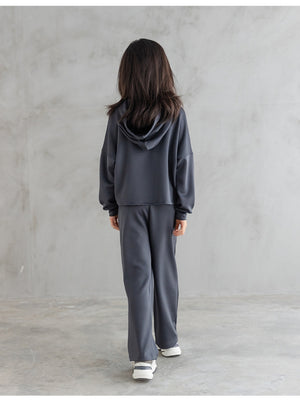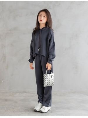 Black & White Hood Long Sleeves Cotton Blend Trousers & Top Solid Clothing Set