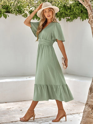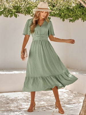 This elegant A-Line dress is made from high-quality blue polyester, perfect for any occasion. The flattering silhouette and versatile color make it a must-have in any wardrobe. The dress features a classic v-neck neckline and a comfortable fit that will make you feel confident and stylish.