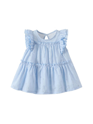 Blue A-Line Round Neck Floral Sleeveless Cotton Dress