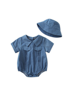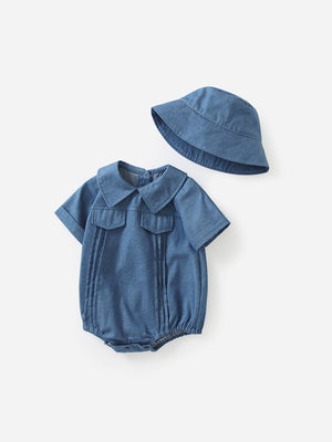Blue Cotton Regular Romper