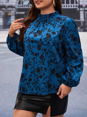 The blue high neck long sleeves floral polyester top is figure-flattering and feminine. The shoulder straps neckline create an elegant silhouette, while the stretchy fabric provides all-day comfort.