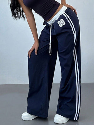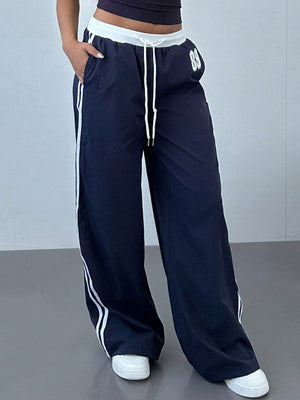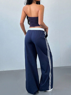 Blue Loose Fit Striped Polyester Trouser