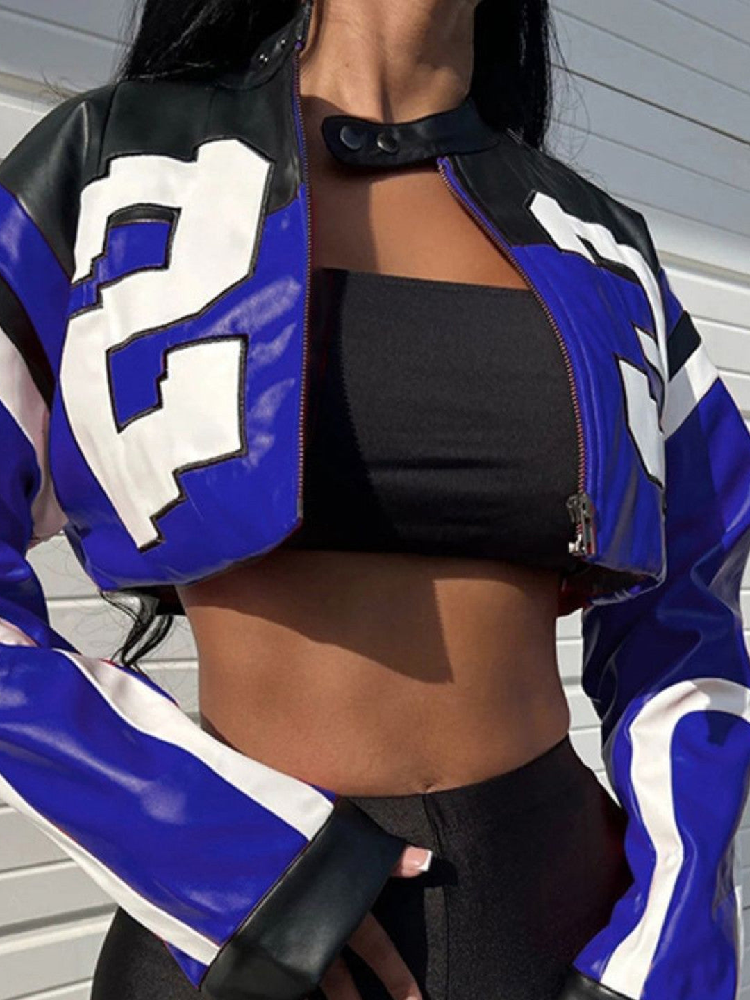 Blue Mandarin Collar Long Sleeves Printed Polyester NA