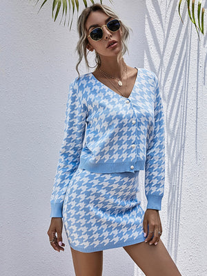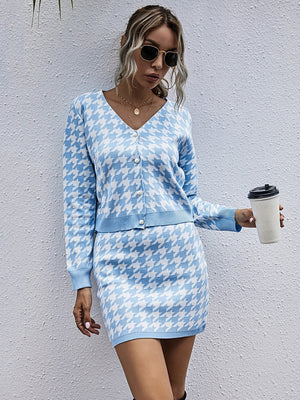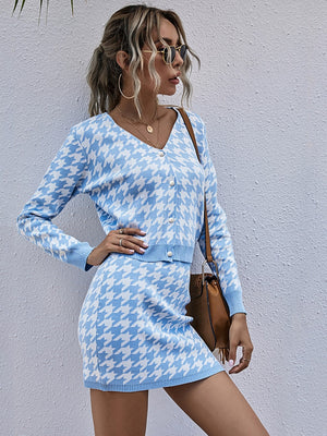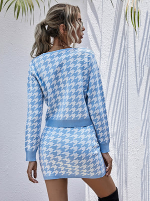 Blue Polyester Top & Skirt Set