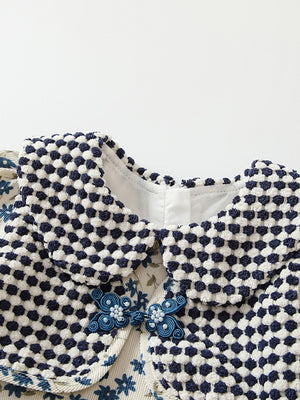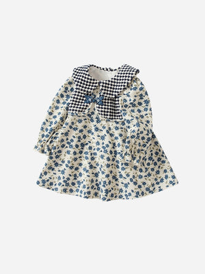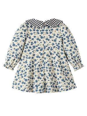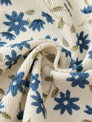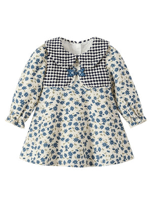 Blue Round Neck Casual A-Line Floral Long Sleeves Knee Length Polyester Dress