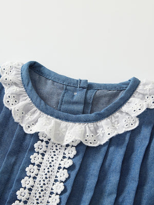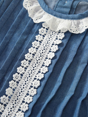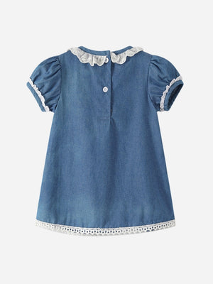 Blue Round Neck Casual A-Line Solid Short Sleeves Knee Length Cotton Dress