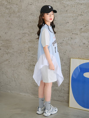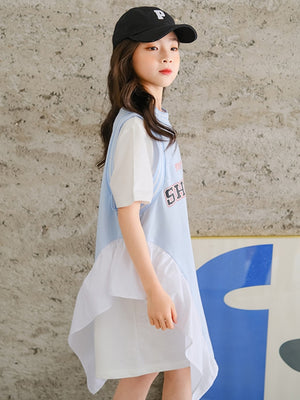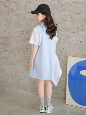 Blue Round Neck Casual A-Line Typography Cotton Knee Length Dresses