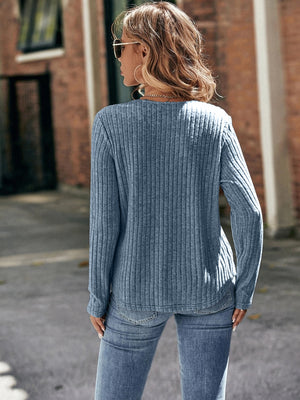 Blue Round Neck Colourblocked Long Sleeves Polyester Top