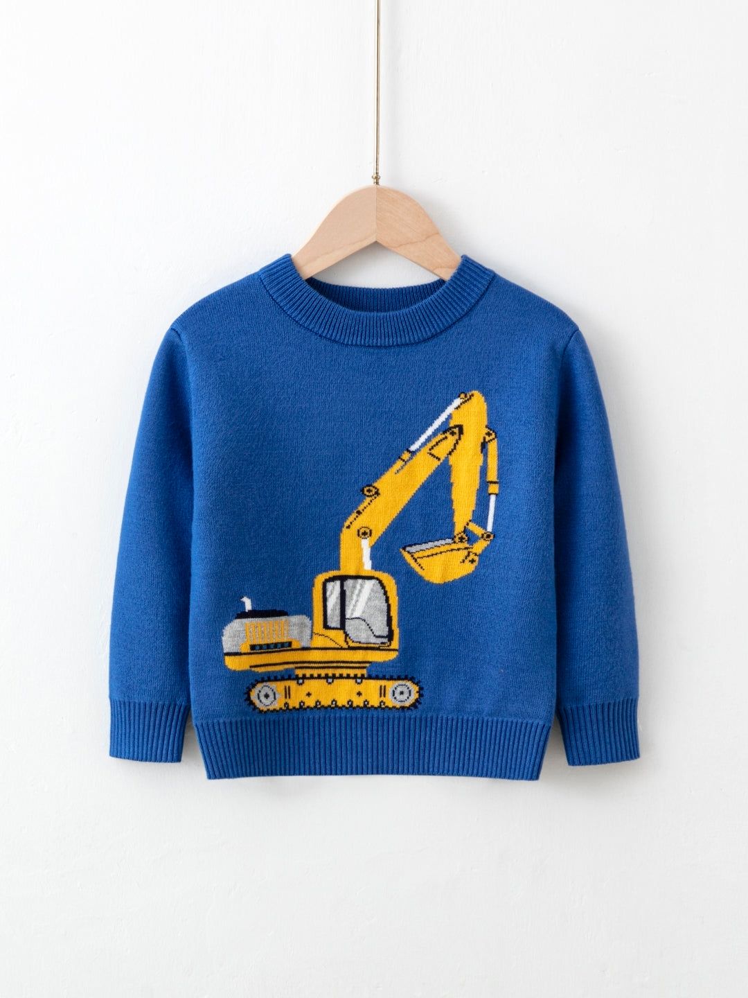 Blue Round Neck Printed Long Sleeves Casual Pullover Viscose Rayon Sweater