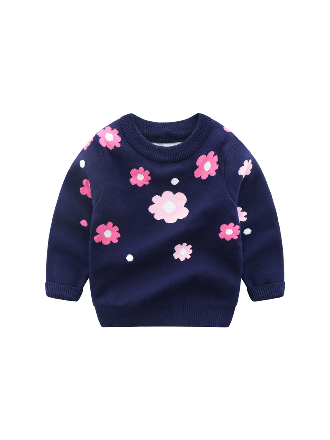 Blue Round Neck Printed Long Sleeves Casual Pullover Viscose Rayon Sweater