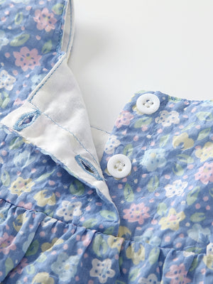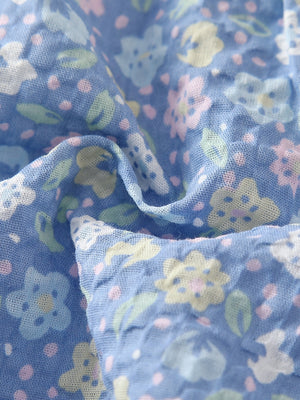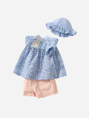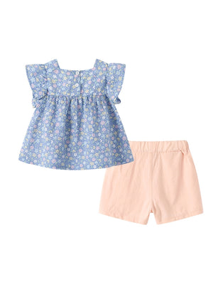 Blue Round Neck Short Sleeves Printed Top & Shorts Pure Cotton Set
