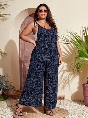 Blue Round Neck Sleeveless Printed Polyester Jumpsuit
