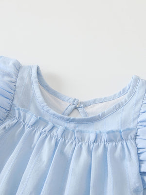 Blue Round Neck Solid A-Line Sleeveless Cotton Knee Length Dress