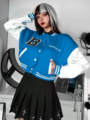 Blue Round Neck Typography Long Sleeves Polyester Casual Top