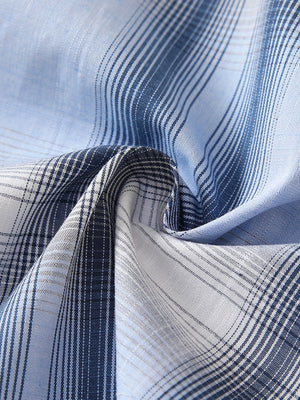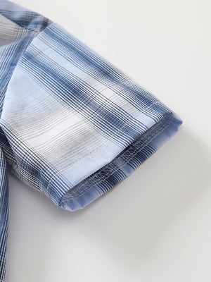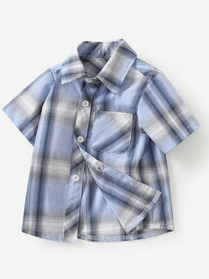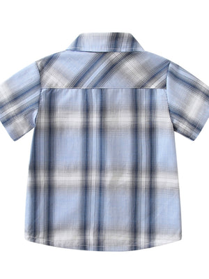 Blue Shirt Collar Short Sleeves Checked Cotton Top