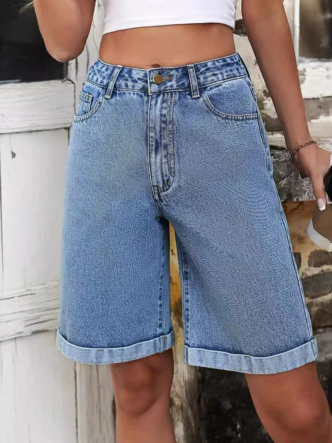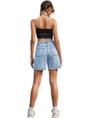 Blue Solid Regular Fit Above Knee Cotton Shorts