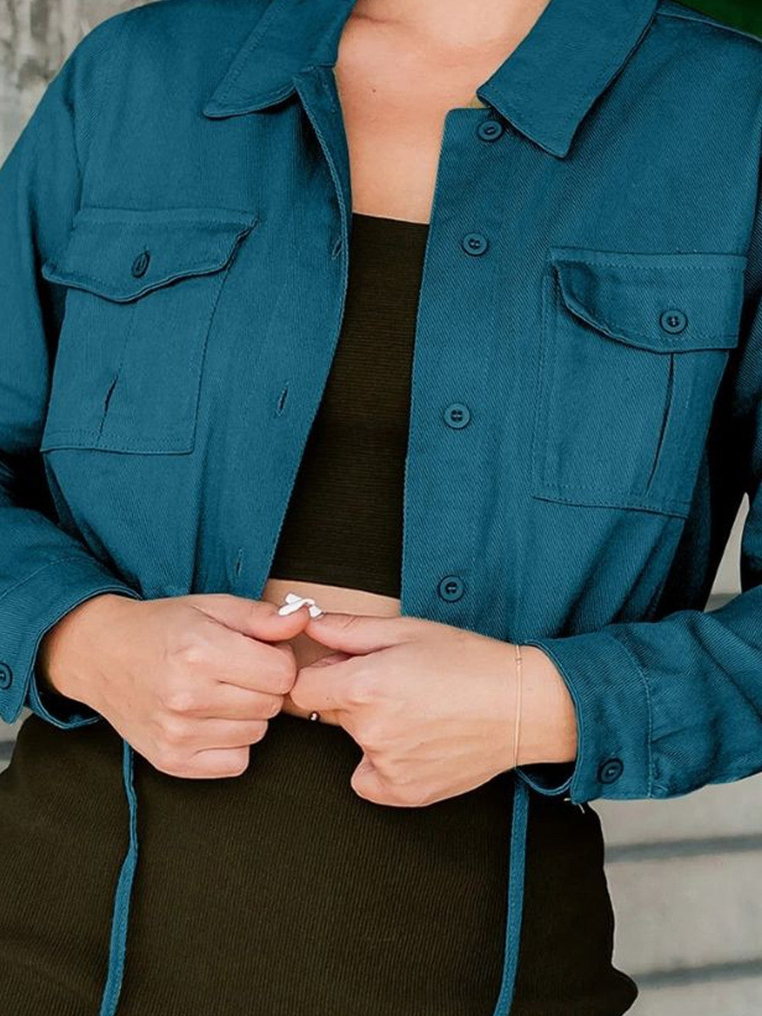 Blue Spread Collar Long Sleeves Solid Polyester NA