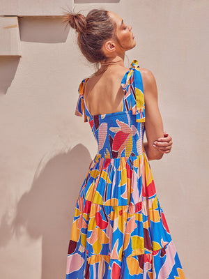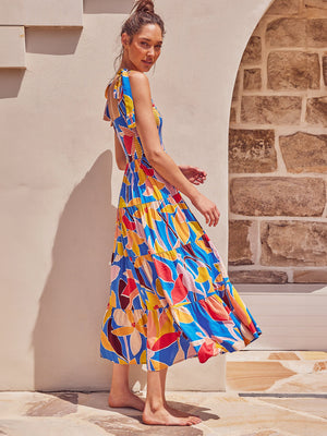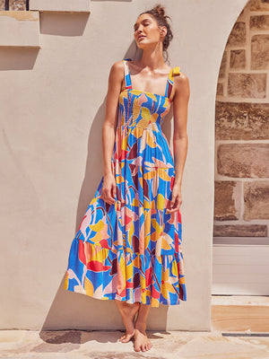 Embrace your feminine side and turn heads with our blue square neck a-line floral sleeveless maxi polyester dress. Crafted from high-quality polyester, this dress offers a comfortable and lightweight feel, perfect for any occasion.
