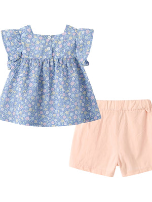 Blue Square Neck Short Sleeves Pure Cotton Top & Shorts Set